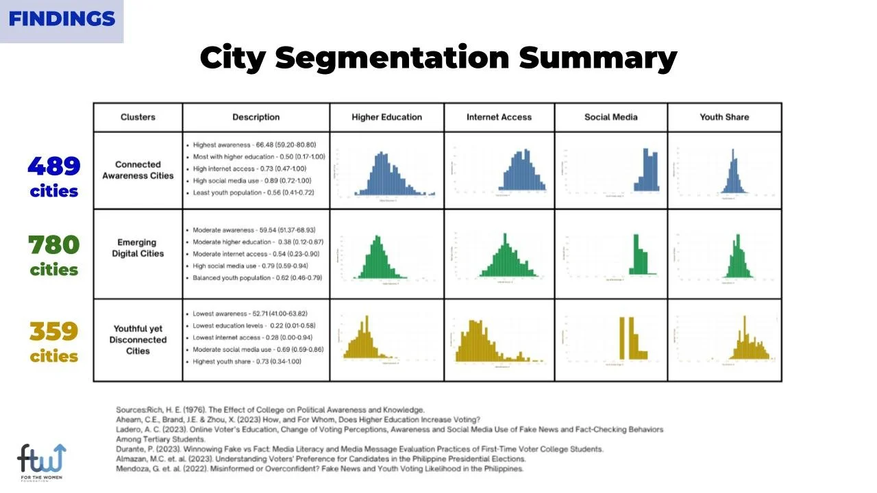 Targeted Resource Allocation: Prioritize voter education initiatives in "Youthful yet Disconnected Cities" (359 cities in Mindanao) where the need is greatest